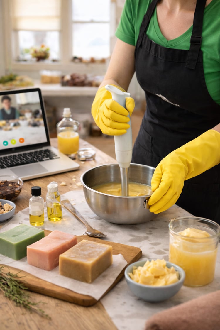 Colleen’s career has spanned studios in Columbus, Asheville’s River Arts District, and Midtown Atlanta’s Goat Farm Arts Center, and a five-year retail storefront and teaching studio in Roswell, Georgia. Now based in the Blue Ridge Mountains of North Georgia, she consults with beauty brands and independent makers on clean formulation, ingredient sourcing, product testing, and regulatory compliance. She also teaches advanced soapmaking and herbal body care through online courses and live workshops helping others create products that are both effective and ethical.